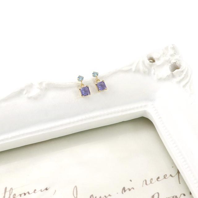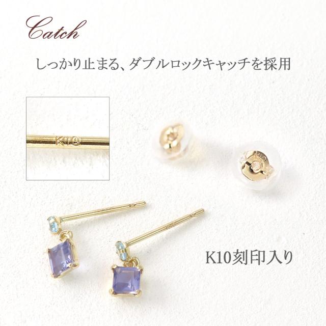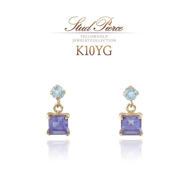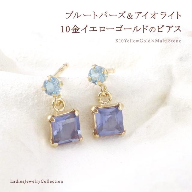 揺れる ピアス レディース 10金 イエローゴールド 10K K10 アイオライト ブルートパーズ 天然石 おしゃれ プレゼント 記念日 誕生日 贈り物 可愛い 小ぶり 小さい ブルー トパーズ パープル 四角 女性 彼女 嫁 天然 宝石 K10YG 本物 11月 3月 誕生石 ホワイトデー お返し