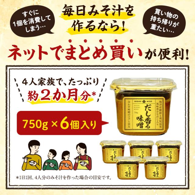 ひかり味噌 だし香る味噌750g×6個 だし入り合わせ味噌 こし味噌 焼津鰹節 利尻昆布 コク旨 溶けやすい 和食 味噌汁用 大容量