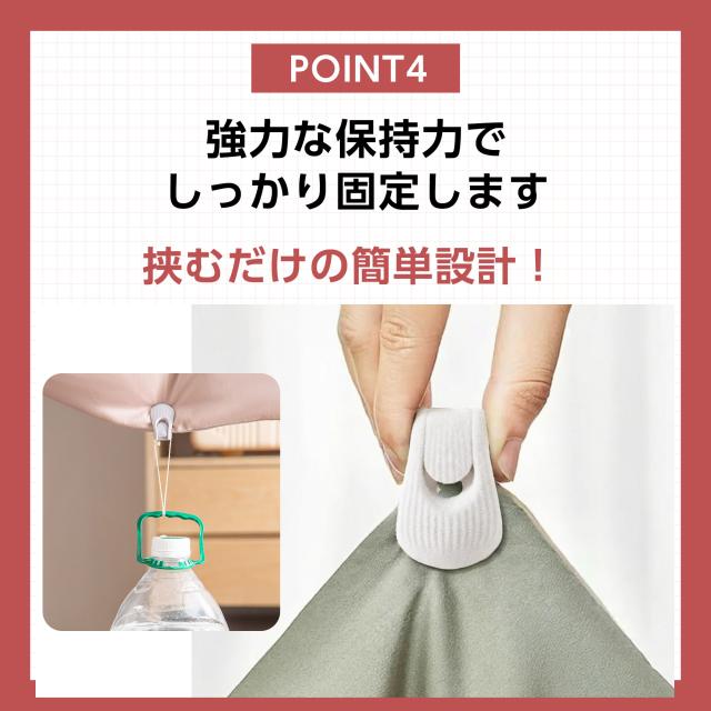 厚手の掛け布団、厚手の掛け布団カバーなどの寝具以外にも、 カーテンを固定したり、洗濯ハサミの代用、小物の整頓に使用することができます。