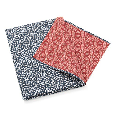 [京のみやび]風呂敷 ふろしき 綿有職小紋両面 小桜×麻葉 nkp 青/赤 三幅 105cm