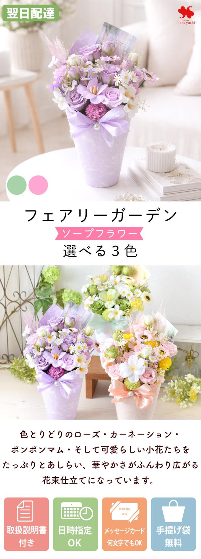 翌日配達 花 ソープフラワー アレンジ「フェアリーガーデン」3カラー 誕生日 プレゼント 女性 ギフト おしゃれ 可愛い お誕生日 シャボンフラワー 結婚祝い 退職祝い 開店祝い 卒業 式 卒園 高校生 先生 母の日 しゃぼん