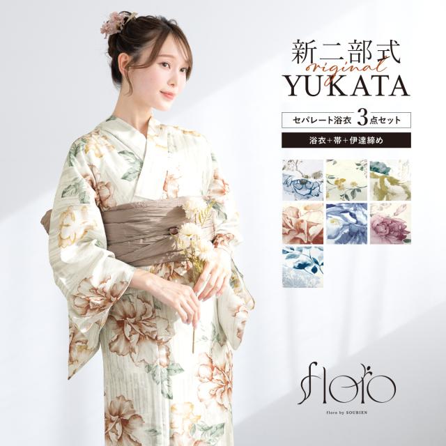 SOUBIENのプライベートブランド『floro by SOUBIEN』のセパレート浴衣3点セットです。