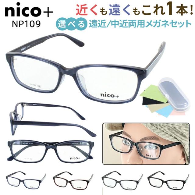 遠近両用メガネ おしゃれ メンズ 境目なし 老眼鏡 遠近両用 UVカット歪みの少ない非球面レンズ nico+ ニコプラス スクエア セルフレーム 軽量 NP109 4カラー 遠くも近くも見える シニアグラス 男性 40代 50代 60代 送料無料