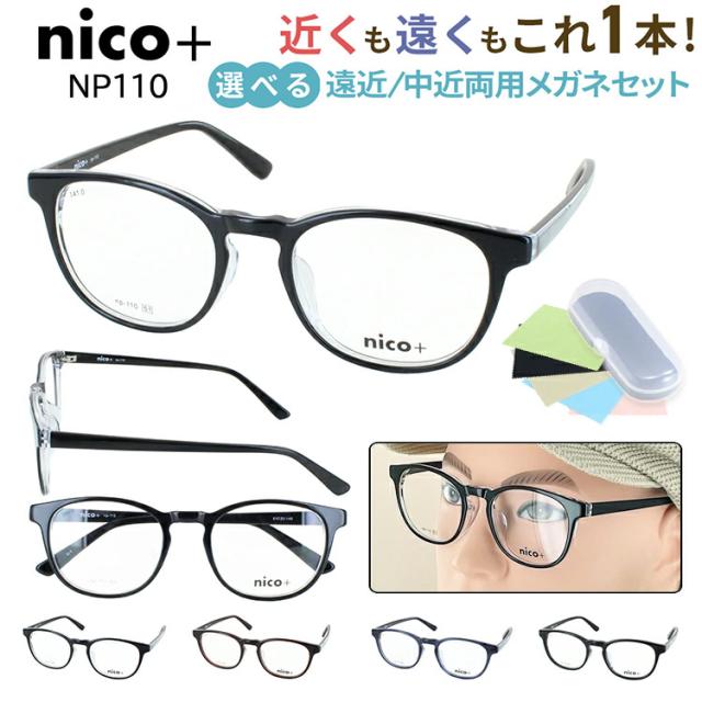 遠近両用メガネ おしゃれ メンズ 境目なし 老眼鏡 遠近両用 UVカット歪みの少ない非球面レンズ nico+ ニコプラス ボストン セルフレーム 軽量 NP110 4カラー 遠くも近くも見える シニアグラス 男性 40代 50代 60代 送料無料