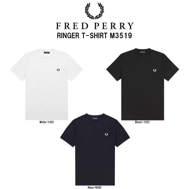 FRED PERRY(フレッドペリー)ユニセックス リンガー Tシャツ 半袖 クルーネック ロゴ 刺繍 コットン レギュラーフィット メンズ レディース M3519
