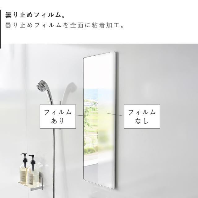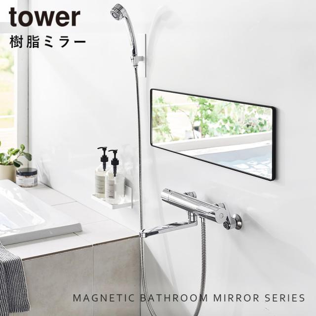 マグネットバスルーム樹脂ミラー 角型ロング 山崎実業 tower 鏡 お風呂 ミラー 割れない マグネット 曇り止め バスルーム おしゃれ モノトーン ホワイト ブラック 10304 10305 メーカー直送