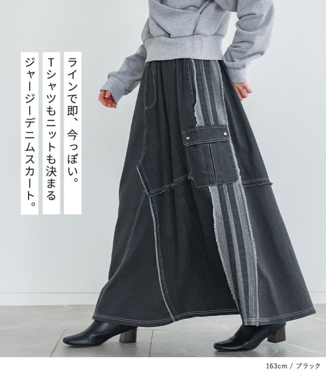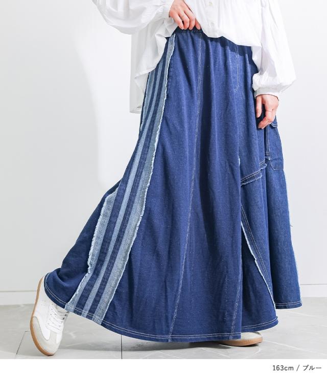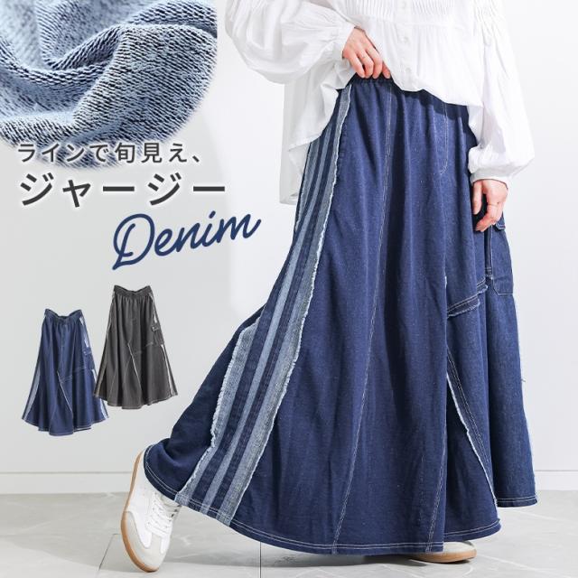 トラックスカート レディース ボトムス ロングスカート マキシスカート デニム風スカート 春 夏 秋 冬 オールシーズン オシャレウォーカー 【TP】 ジャージーデニム デニム デニム風 デニムスカート スカート フレアスカート リメイク風スカート 個性派スカート ロング丈 マキシ丈 フルレングス 10分丈 フレア ウエストゴム 切り替え サイドライン トラックライン ライン柄 ライン 配色 無地 ポケット おうちで洗える カジュアル シンプル ナチュラル モード キレカジ アメカジ スポーティ 可愛い系 大人女子 大人可愛い お洒落可愛い 大人カジュアル ベーシック ニュアンス ラフ Sサイズ Mサイズ Lサイズ LLサイズ 3Lサイズ XLサイズ フリーサイズ ぽっちゃり 体型カバー 大きいサイズ プラスサイズ 10代 20代 30代 40代 50代 60代 低身長 高身長 女子会 オフィス 通勤 通学 お買い物 お出掛け 旅行 おしゃれ お洒落 トレンド 流行 osharewalker ブルー 青色 ブラック 黒色[ID]15bp026[デニムラインスカート]