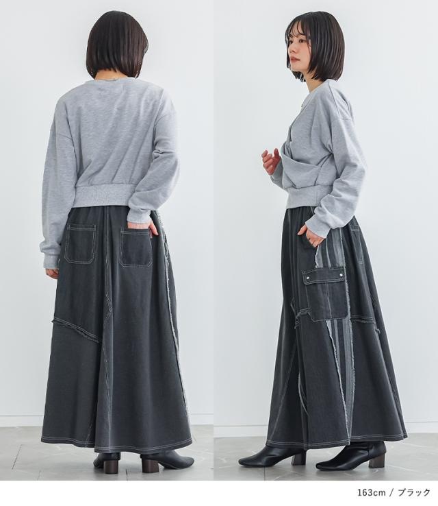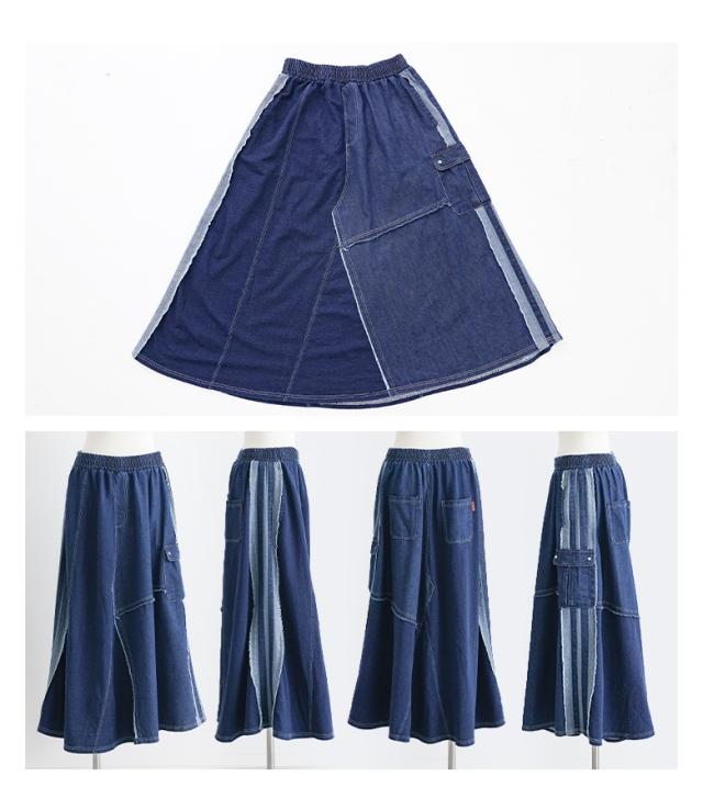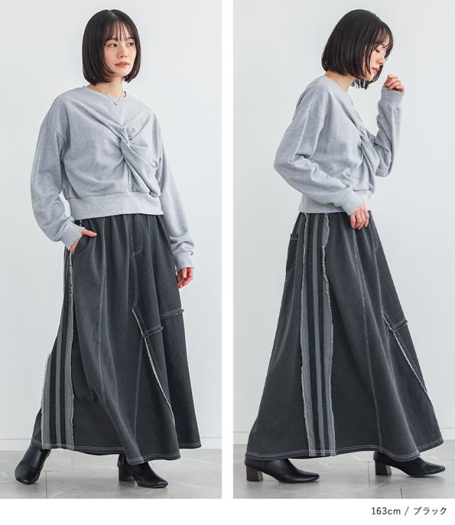 <冬新作>『デニムラインスカート』【メール便不可】【20】[トラックスカート レディース ボトムス ロングスカート マキシスカート デニム風スカート 春 夏 秋 冬 オールシーズン オシャレウォーカー]