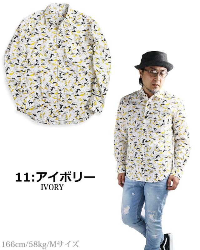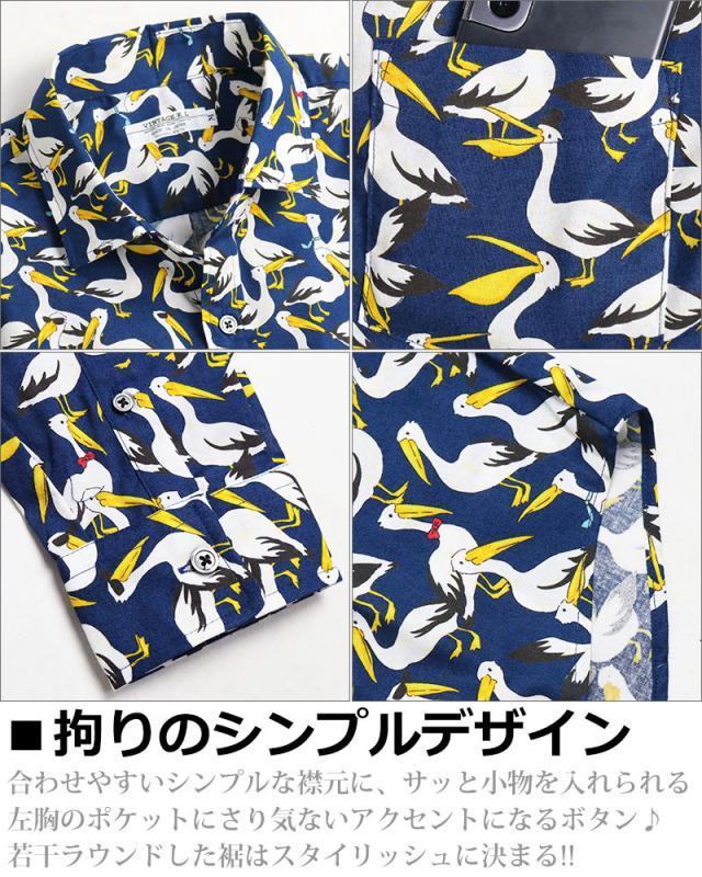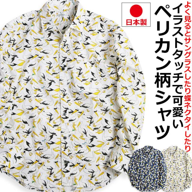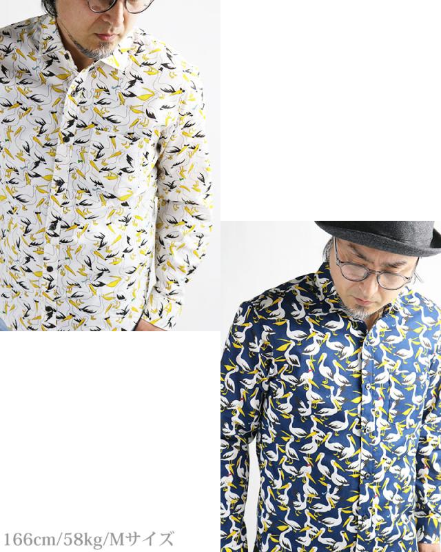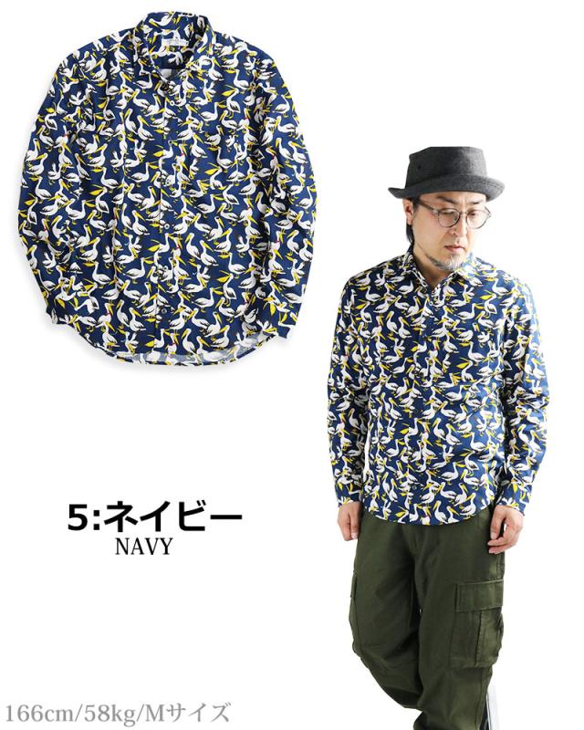 日本製 鳥柄 ペリカン バード 長袖シャツ メンズ 柄シャツ アニマル 動物柄 VINTAGE EL