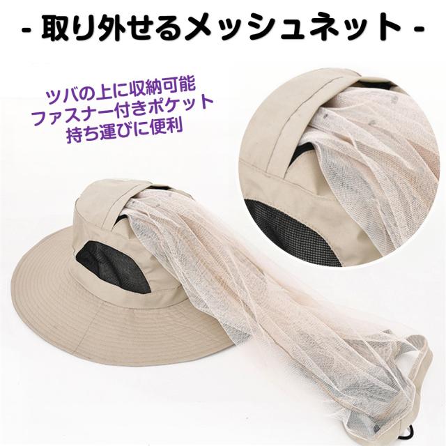 帽子 日よけ 虫よけ ネット付き サファリハット 農作業 ガーデニング 草刈り 2WAY 防虫 虫除け 蚊帳 フェイスガード メッシュ 通気性 軽量 登山 釣り アウトドア