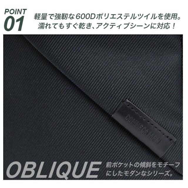 前ポケットの傾斜(Oblique)デザインを取り入れた、シンプルながら存在感のあるスタイル。
