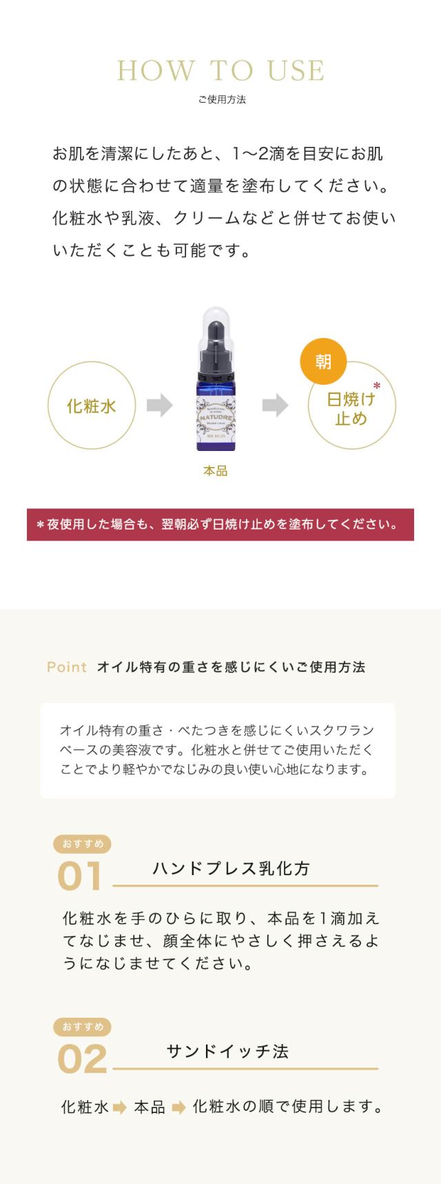 ■使用方法:お肌を清潔にした後、1〜2滴を目安にお肌の状態に合わせて適量を塗布してください。