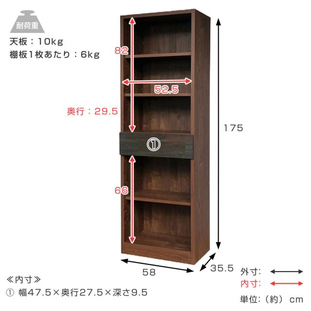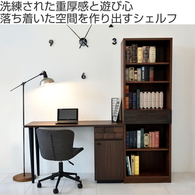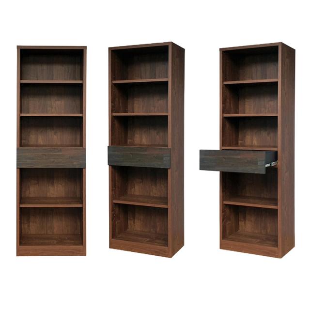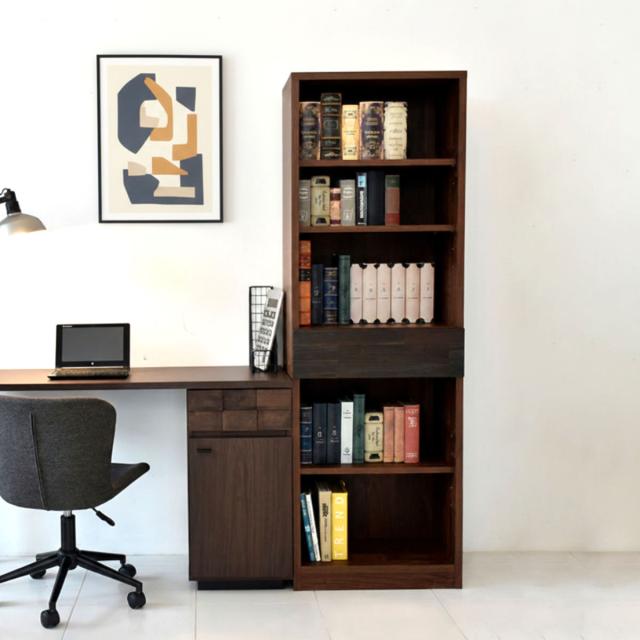 本棚 幅58cm 引き出し 木目調 日本製 可動棚 完成品 シェルフ 収納棚 スライドレール ( 開梱設置 棚 ラック 飾り棚 アカシア材 バイカラー オープンラック ディスプレイ 収納 家具 )
