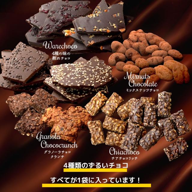 シュガーレスチョコレートを使用した絶品スイーツ「ずるいチョコレート」はナッツチョコ、グラノーラクランチ、割れチョコなどバラエティ豊かなスイーツ。こんなに美味しくてヘルシーだなんて…このチョコ、ずるい…!?