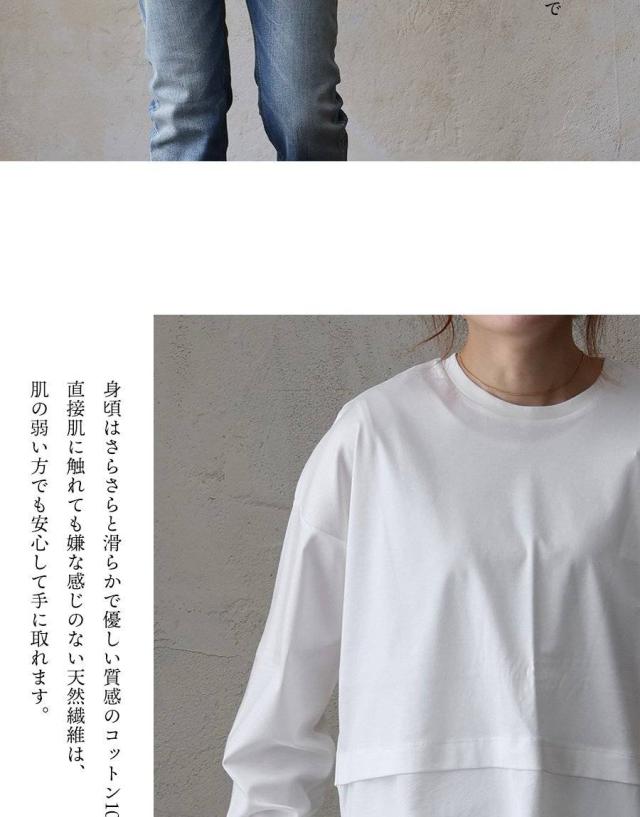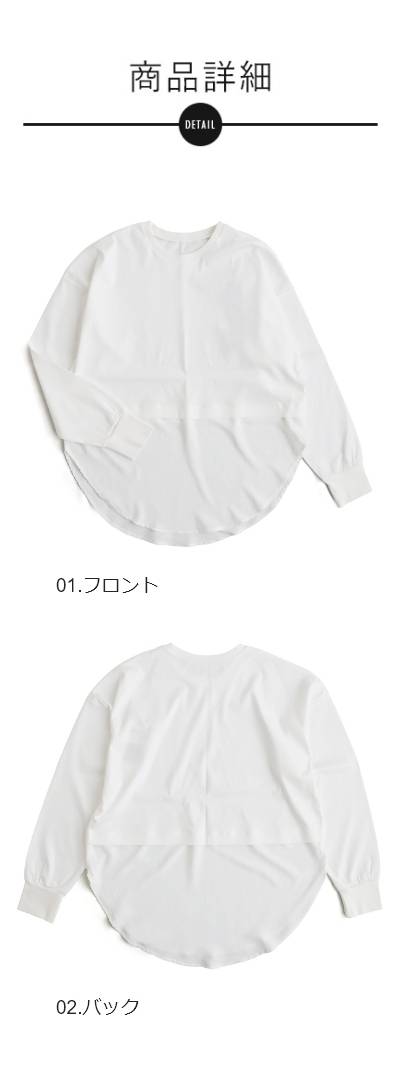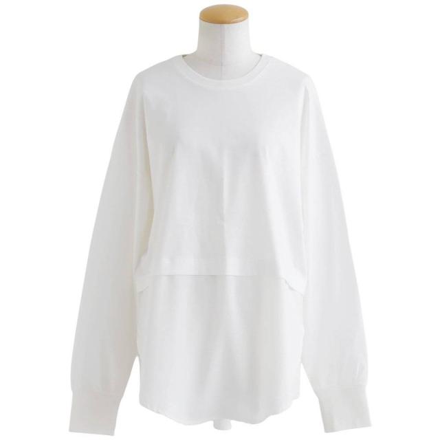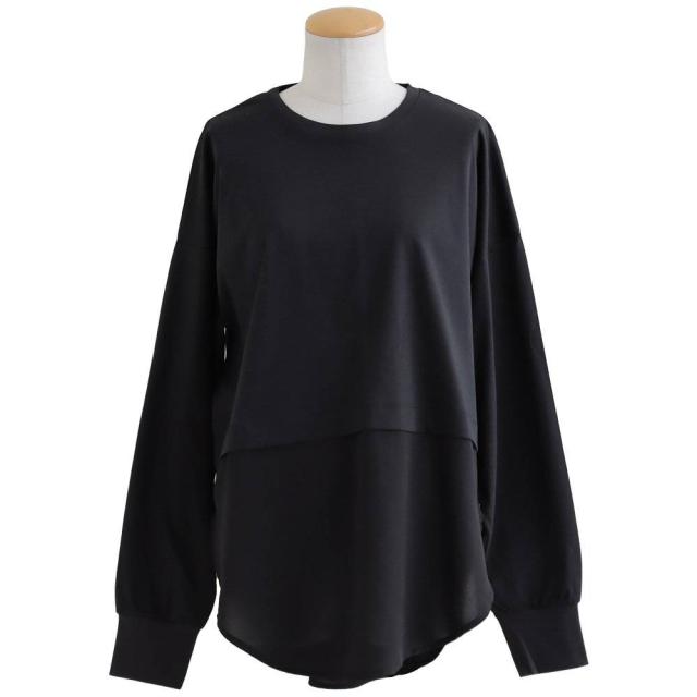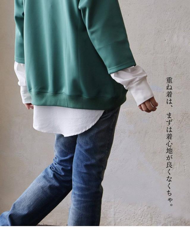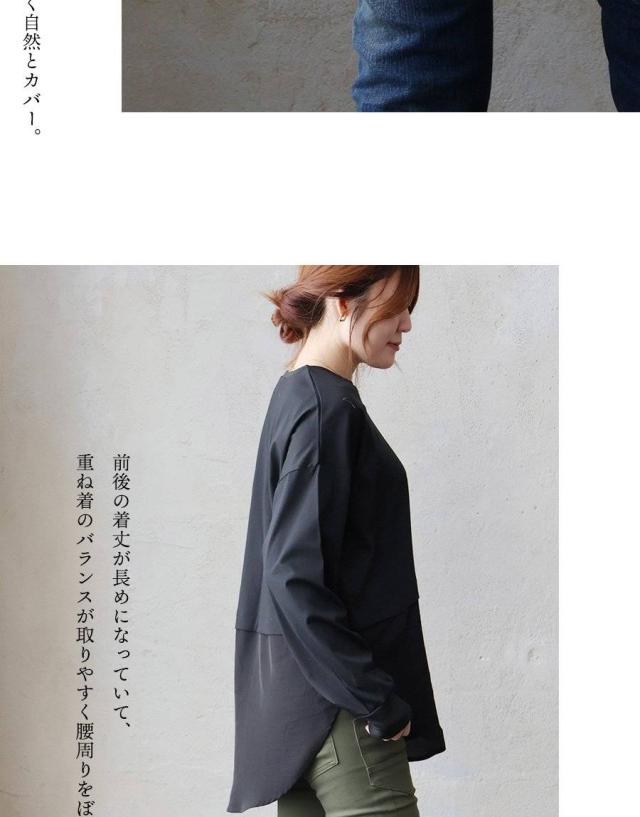 カットソー 長袖 レディース クルーネック 重ね着 無地 接触冷感 薄手 軽い 異素材切り替え 綿100 コットン ポリエステル 布帛 袖リブ 大きいサイズ カジュアル パティ