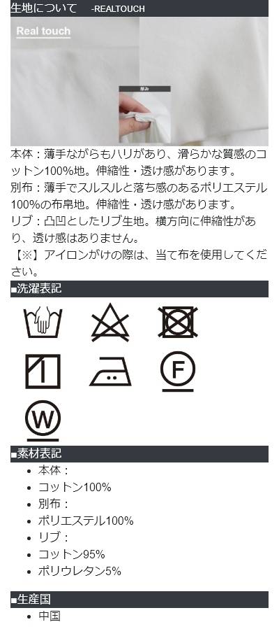 [素材]本体:コットン100% 別布:ポリエステル100% リブ:コットン95% ポリウレタン5%