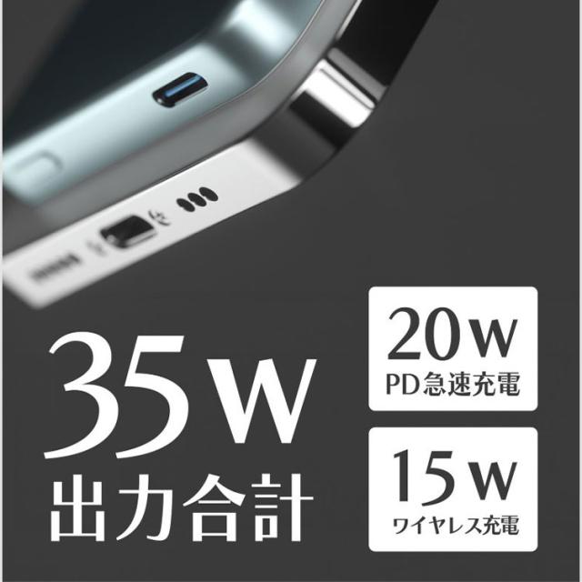 | 仕様 | バッテリー:純コバルトバッテリーセル 出力:USB-C 最大22.5W / ワイヤレス充電(MagSafe対応) 最大15W |