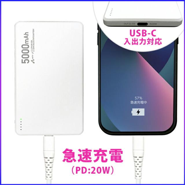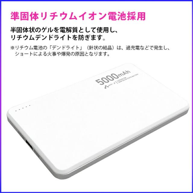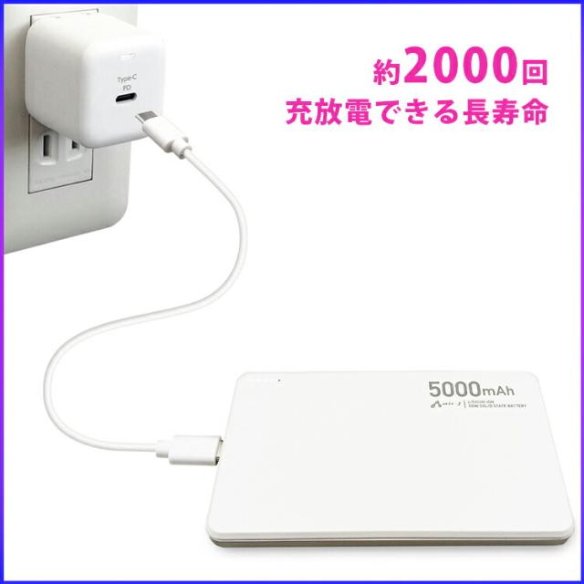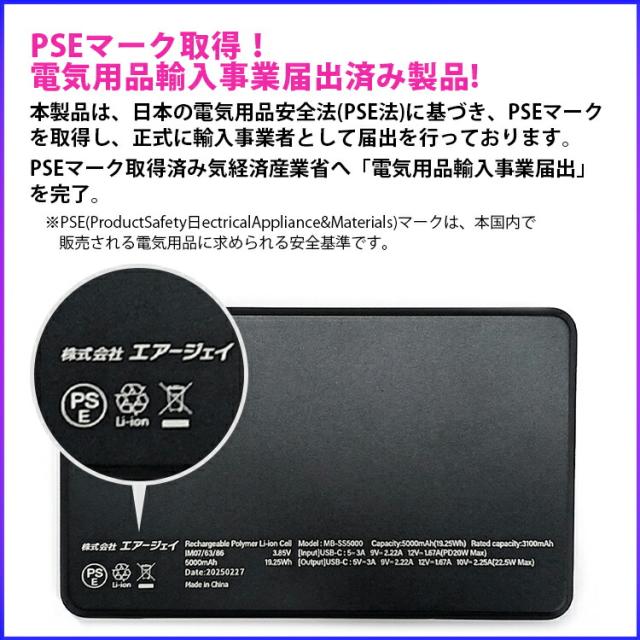 エアージェイ 準固体モバイルバッテリー 5000mAh MB-SS5000|燃えない ゲル電池 準固体電池 半固体 個体 モバイルバッテリー 軽量 小型 大容量 急速充電 USB-C PD対応 安全 長寿命エアリア 機内 海外【送料無料(メール便)】