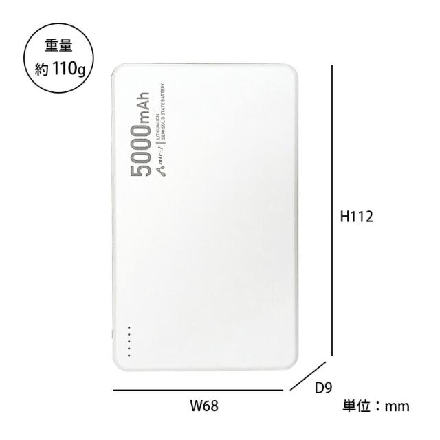| 商品名 | エアージェイ 準個体モバイルバッテリー 5000mAh |