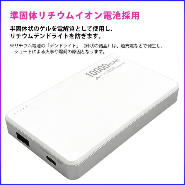 準固体モバイルバッテリー 10000mAh エアージェイ|モバイルバッテリー 軽量 小型 大容量 急速充電 同時充電 USB-C PD対応 安全 長寿命 ゲル電池 準固体電池 半固体 エアリア 準 個体 燃えない 機内 海外【送料無料(小型宅配便)】