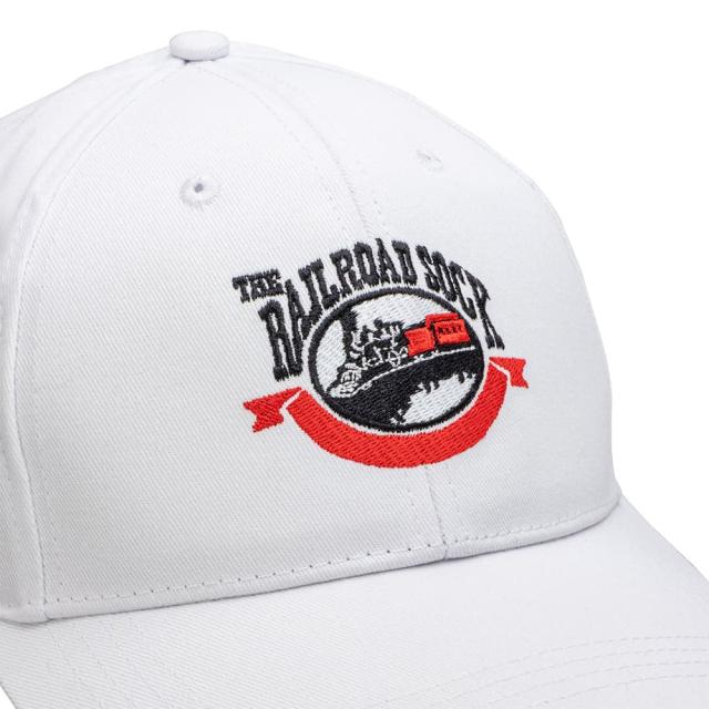 このキャップは、カスタムステッチの Railroad Sock ロゴと調節可能なフック アンド ループ ストラップで仕上げられており、