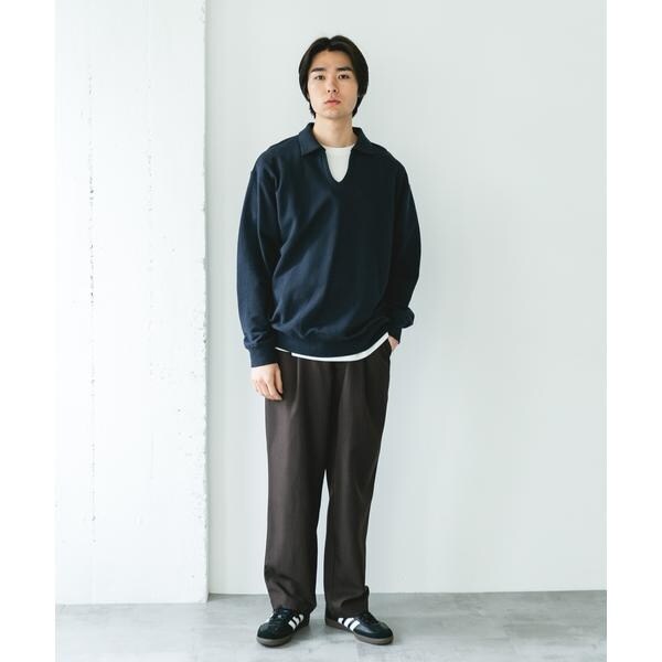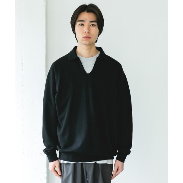 トレンド感のあるスキッパーデザインで、寒い時期はタートルやモックネック、暖かい時期はロンTとのレイヤードも楽しめます。