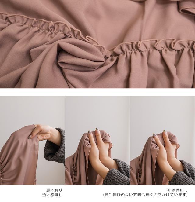 | 表地は柔らかく落ち感のあるジョーゼット生地、裏地にはさらりとした伸縮性のない生地を使用。 |