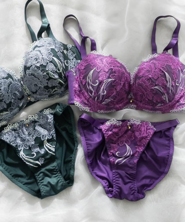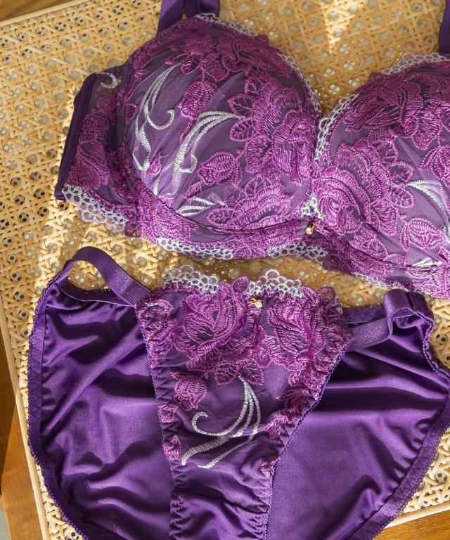 大きいサイズ/レディース/D85/D90/D95/E85/E90/E95/F85/F90/F95/G85/G90/G95/ラグジュアリーローズ刺繍ブラジャー&ショーツセット