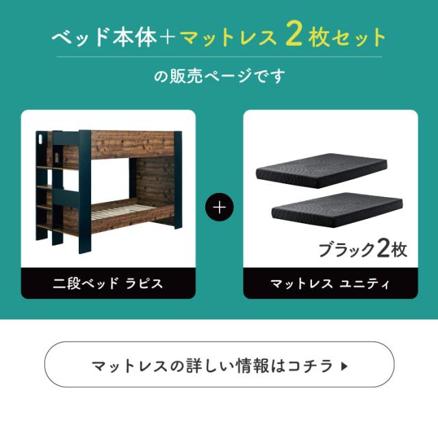 二段ベッド 大人用 マットレス付き 子供 分離 シングルベッド すのこ マットレス シングル 黒 ブラック 2枚セット Lapis(ラピス)+Unity(ユニティ) 2色対応 二段ベット 収納 宮付き おしゃれ 子供部屋