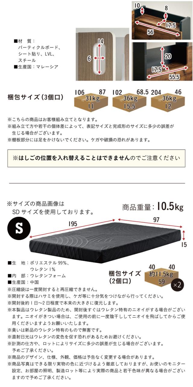 ※ベッド本体+マットレス(ブラック)2枚セットの販売となります。