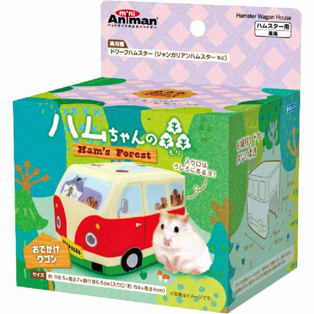 ・ハムちゃんの森にピッタリの、もぐもぐハムちゃんのプリントがかわいい、ワゴン型のハウスです。・お掃除しやすい底なし構造。・ドワーフハムスターにオススメのハウスです。