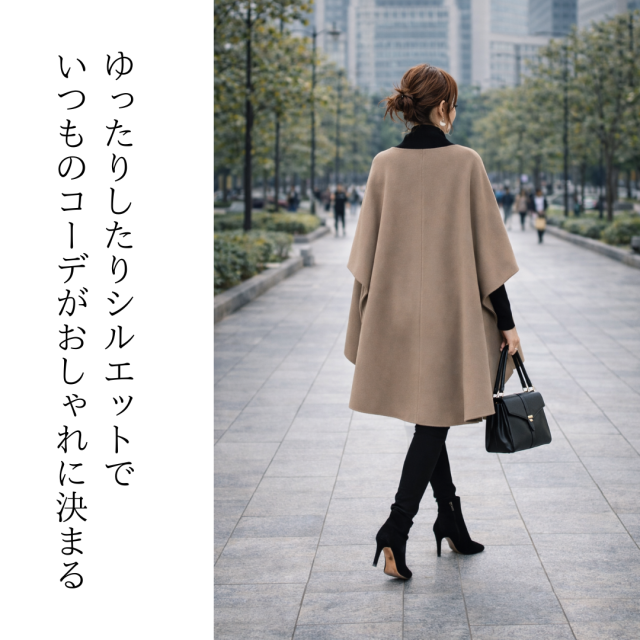 着るだけでこなれるポンチョコートです。