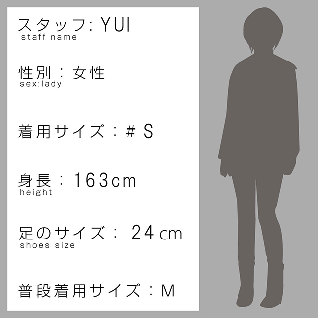 | 表記サイズ(約cm) | 肩幅 | 身幅 | 着丈 | 袖丈 |