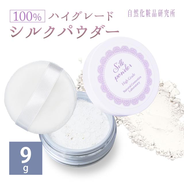 シルクパウダーハイグレード 9g ケース入り・パフ付き [ シルク100% 国産 フェイスパウダー ルースパウダー ナイトパウダー ファンデーション 24時間 ノーカラーファンデ 化粧下地 毛穴 石鹸オフ テカリ UVカット 石鹸で落ちる 石鹸 ノーカラー つけたまま 付けたまま ]