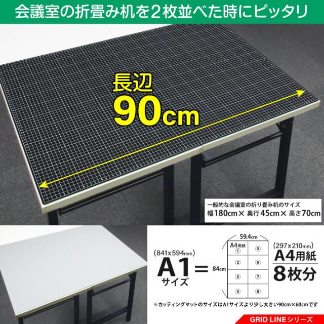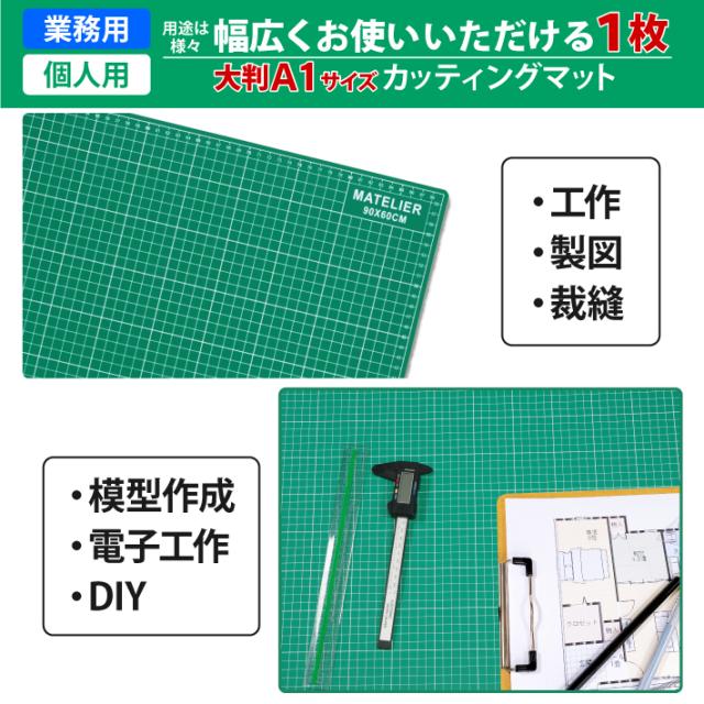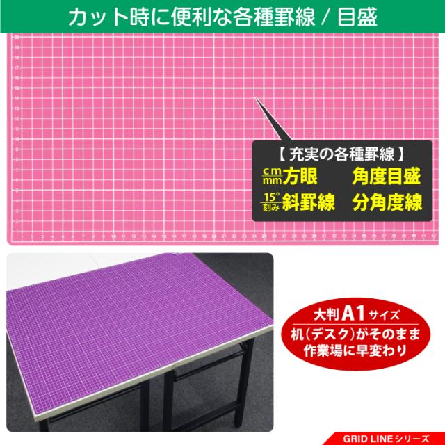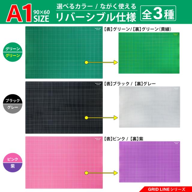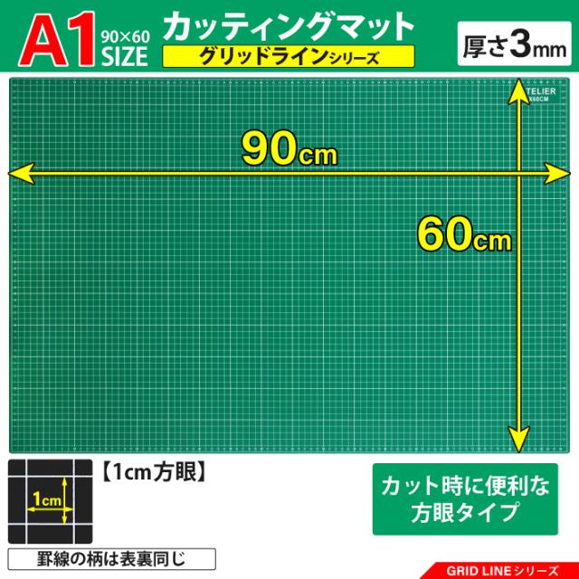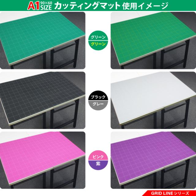 カッティングマット A1 サイズ 90cm x 60cm x 3mm 1cm方眼 特大 両面メモリ 業務用 デスクマット グリーン ブラック ピンク 紫 両面 大判 カッターマット 作業台