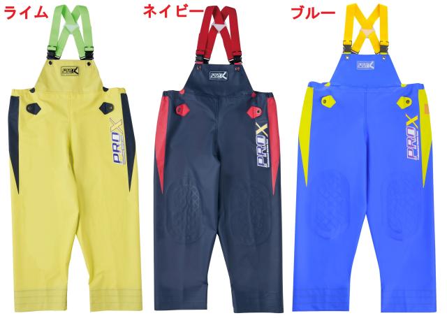 プロエックスα 胸付ズボン ネイビー ライム ブルー S M L LL 3L 4L 5L 弘進ゴム 日本製 レインパンツ レインウェア 水産合羽 裾口3段階に調節可能