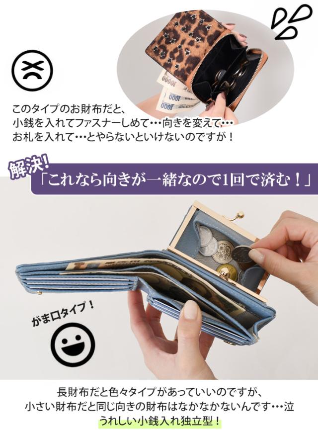 新作 がま口財布 二つ折り 小銭入れ レディース 使いやすい お札2か所 ボックス型 中仕切りあり コンパクト 小さい カード入れ 小さめ 時短 おしゃれ