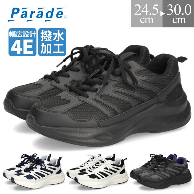 スニーカー メンズ 紐 靴 撥水加工 4E 幅広 ローカット 軽量 通勤 通学 ウォーキング ブラック ホワイト Parade パレード 58303