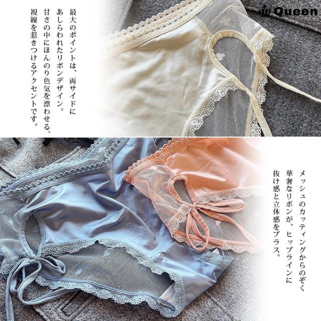 | 商品名 | リボンつきカットアウトサテンスート柄メッシュショーツ |