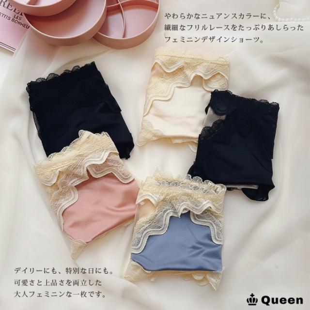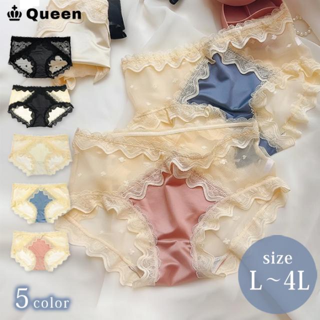 ★☆ショーツ レディース パンティ 大きいサイズ 下着 ランジェリー フレンチガーリー バレエコア サテン メッシュ ニュアンスカラー 無地 L LL 3L 4L Queen クイーン☆★