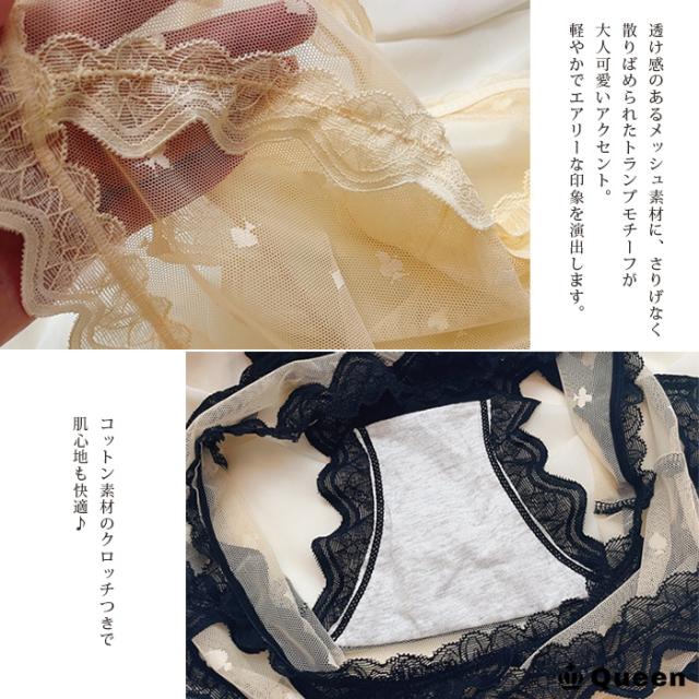 | 商品名 | フリルレース配色サテンスート柄メッシュショーツ |