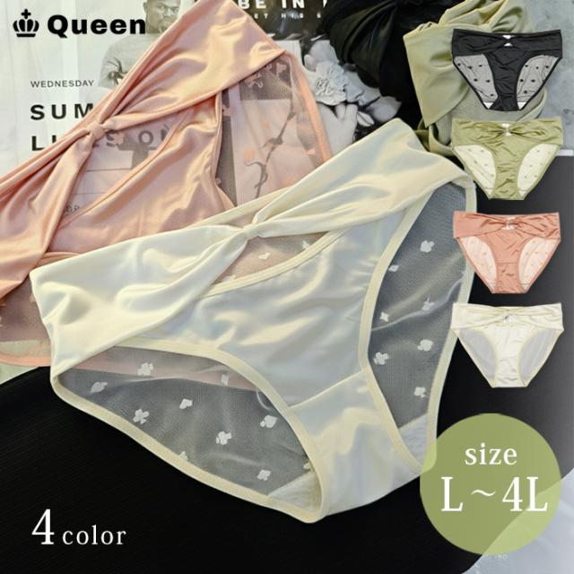 ★☆ショーツ レディース リボン パンティ 大きいサイズ 下着 ランジェリー バレエコア フェアリー サテン メッシュ ツイストリボン 無地 L LL 3L 4L Queen クイーン☆★