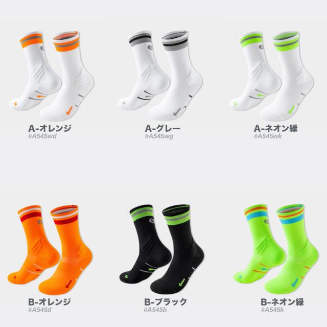 A-オレンジ/A-グレー/A-ネオン緑/B-オレンジ/B-ブラック/B-ネオン緑ビビッドなカラーが映えるスポーティーデザインのクルーソックス!