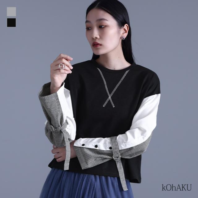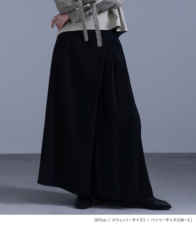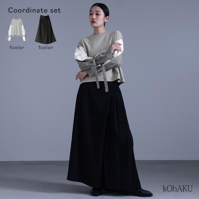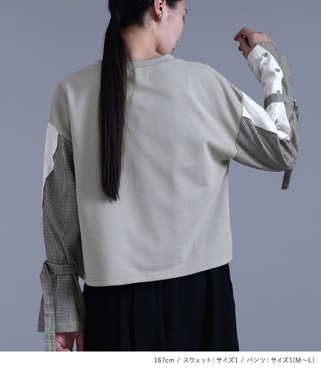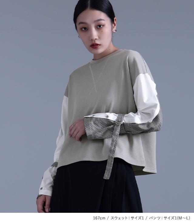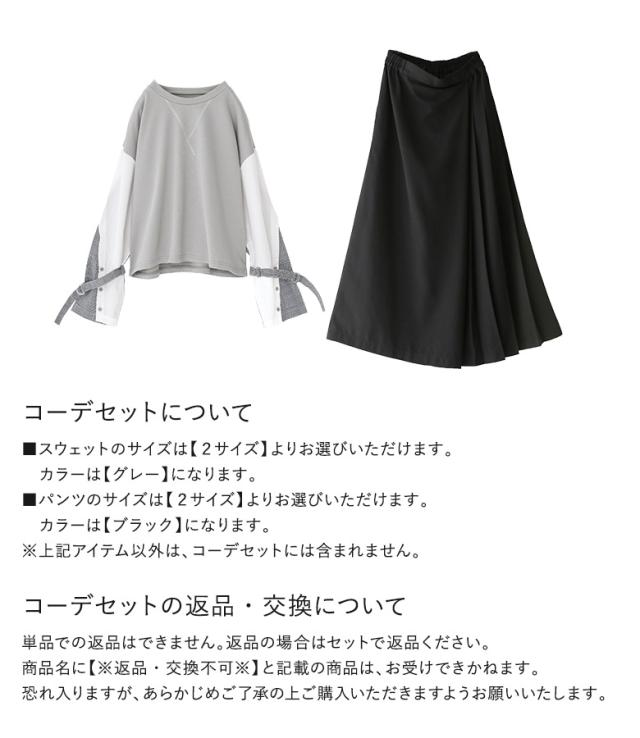 1,000円オフ4日0時迄 『袖異素材スウェット×カシュクール風アシメプリーツパンツコーデ2点SET』【メール便不可】【40】[2点コーデセット 2026 レディース スウェット トップス 長袖 異素材 ボトムス パンツ ロングパンツ ワイドパンツ]
