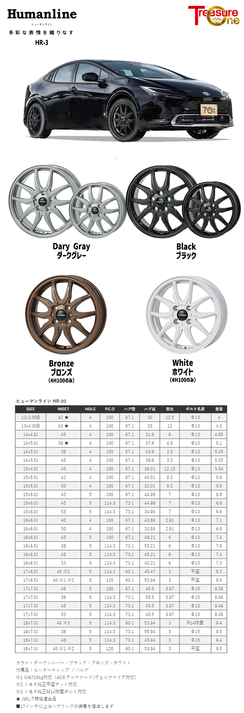 トレジャーワン ヒューマンライン HR3 16インチ 6.5J 5H114.3 +53 ダークシルバー アルミホイール単品 4本(1台分) 送料無料