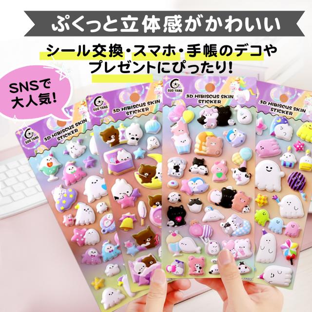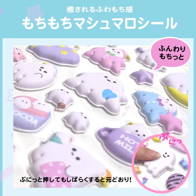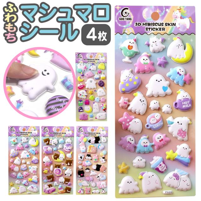 【商品名】シール ぷっくりシール マシュマロシール デコシール 4枚 ぷくぷく ふわふわ もっちりシール ステッカー 立体シール 3d シール かわいい ご褒美シール 女の子 男の子 シール帳 シール交換 送料無料
