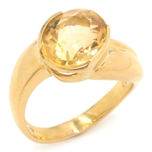 ジュエリーマキ 3.62ct天然シトリンリング 13号 K18YG オーバルカット 黄水晶 一粒 重なり合う イエローゴールド 地金5g 中古 送料無料