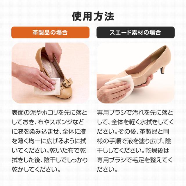 ■使用できないもの:ヌメ革、アニリン染色されたもの、エナメル、ヌーバッグ、は虫類革、ガラス張り革