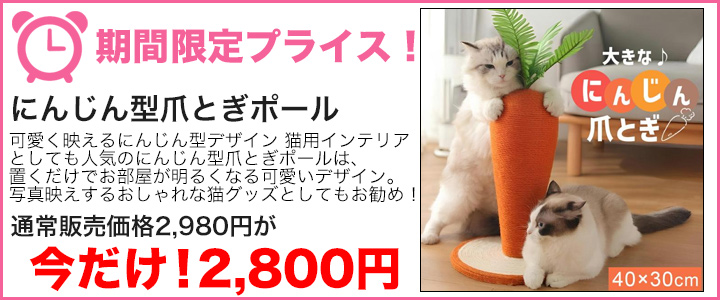 猫用インテリアとしても人気のにんじん型爪とぎポールは、置くだけでお部屋が明るくなる可愛いデザイン。爪とぎとしての実用性はもちろん、写真映えするおしゃれな猫グッズとしてもおすすめ。にんじん型 爪とぎは見た目と機能性を両立したアイテムです。