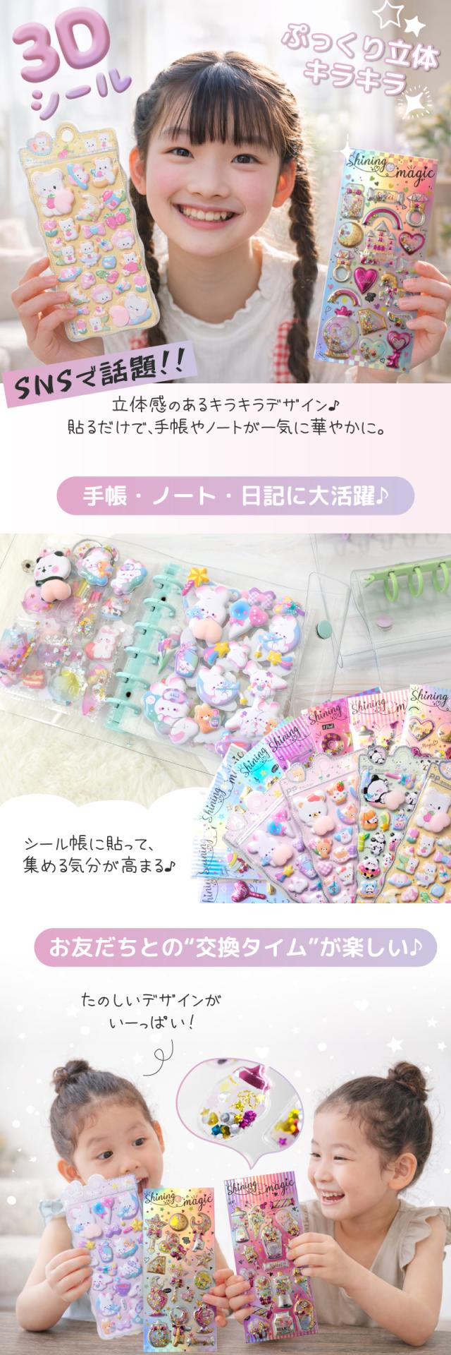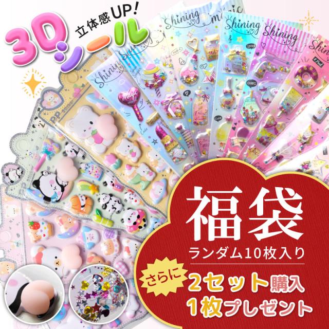 【1セット10枚入り】【2セット購入で1枚プレゼント】シール 福袋 3Dシール 立体シール 交換 シャカシャカ 可愛い ステッカー ぷくぷくシール スパンコール付き キラキラ 子供 女の子 プレゼント おしり お尻 ぷにぷに キャラクター おはじきシール 男の子 女の子 即納